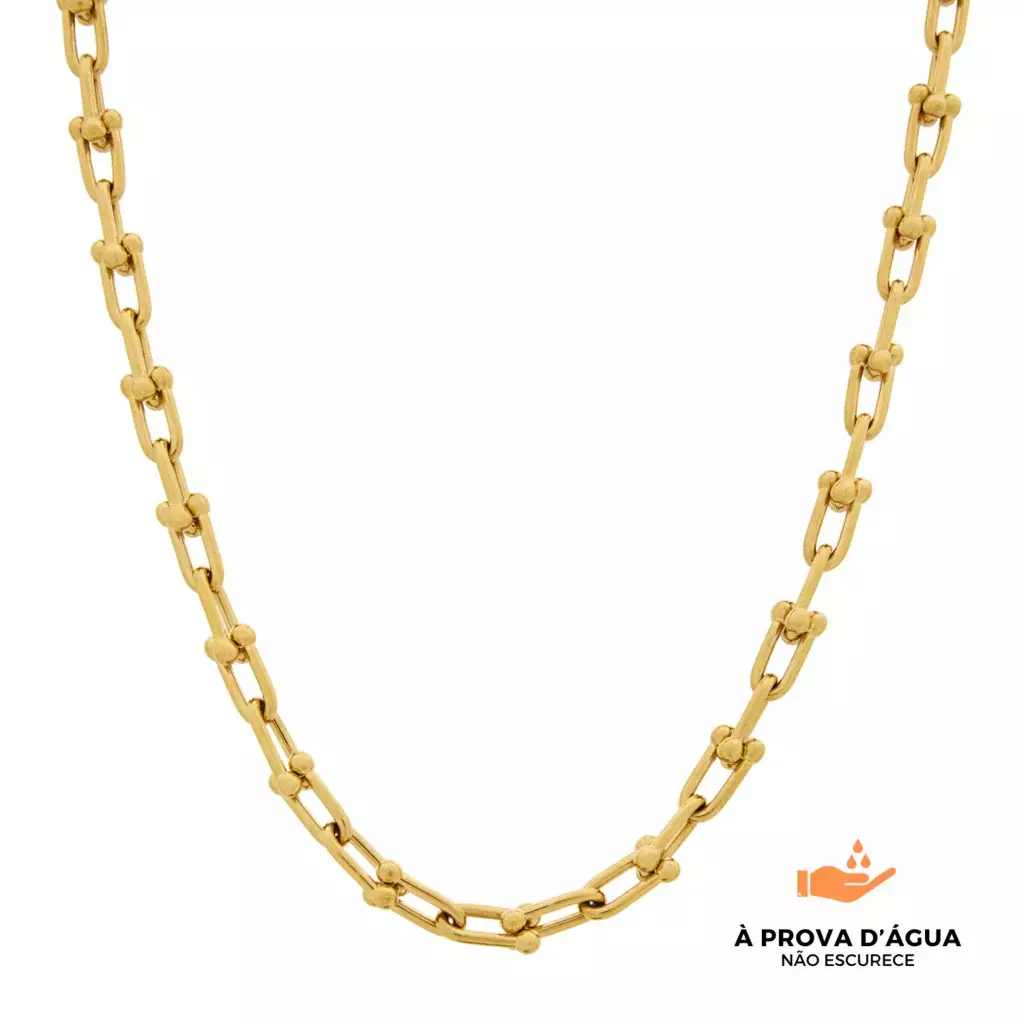 Quer um acessório que realmente faça você brilhar? O Colar Elos é feito em aço inoxidável 316L hipoalergênico da mais alta qualidade, perfeito para peles sensíveis. Com banho em Ouro 18k, ele oferece um brilho intenso e duradouro que transforma qualquer look. Seus elos marcantes trazem um toque sofisticado e moderno, ideal para quem não abre mão de estilo e conforto. Aposte no Colar Elos e destaque-se com elegância e personalidade!